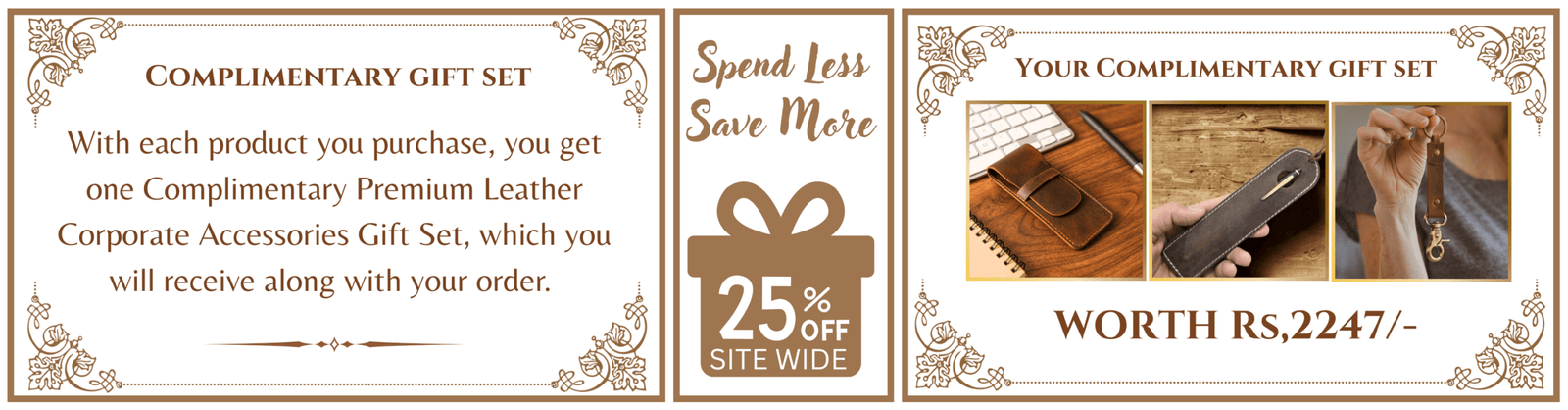 The Complimentary Gift Set Offer is not valid on individual purchases of the Flip-top Pen Case, the Pen Stand, the Bookmark, the Keychains, the Table Coasters, and any bulk orders from the Corporate Gift section.”