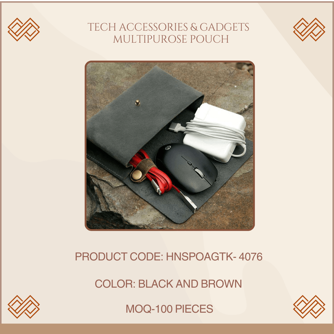 Premium Leather Craftsmanship: Our 100% leather pouch is expertly crafted from high-quality leather, ensuring both durability and a touch of elegance. You can use this gadget pouch to have access to all your mobile phone, and laptop accessories like Mobile charging bank, Hard drives, Earphones, Ear Pods, cables, flash drives, plugs etc., for your daily use in office or while traveling.