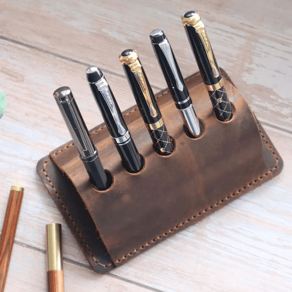 Genuine Leather Material Pen stand complements any office or home decor.. Their sophisticated appearance makes them suitable for various settings.