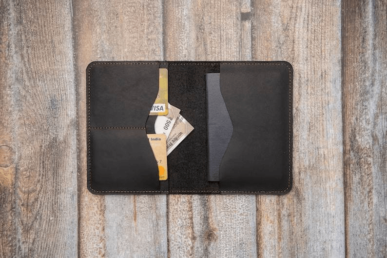 This Passport Jacket is crafted from 100% genuine leather, ensuring quality and durability. Designed with the modern traveler in mind, this passport holder offers compartments to accommodate your passport, Airport Lounge access card, Frequent Flyer Card, boarding passes, etc.