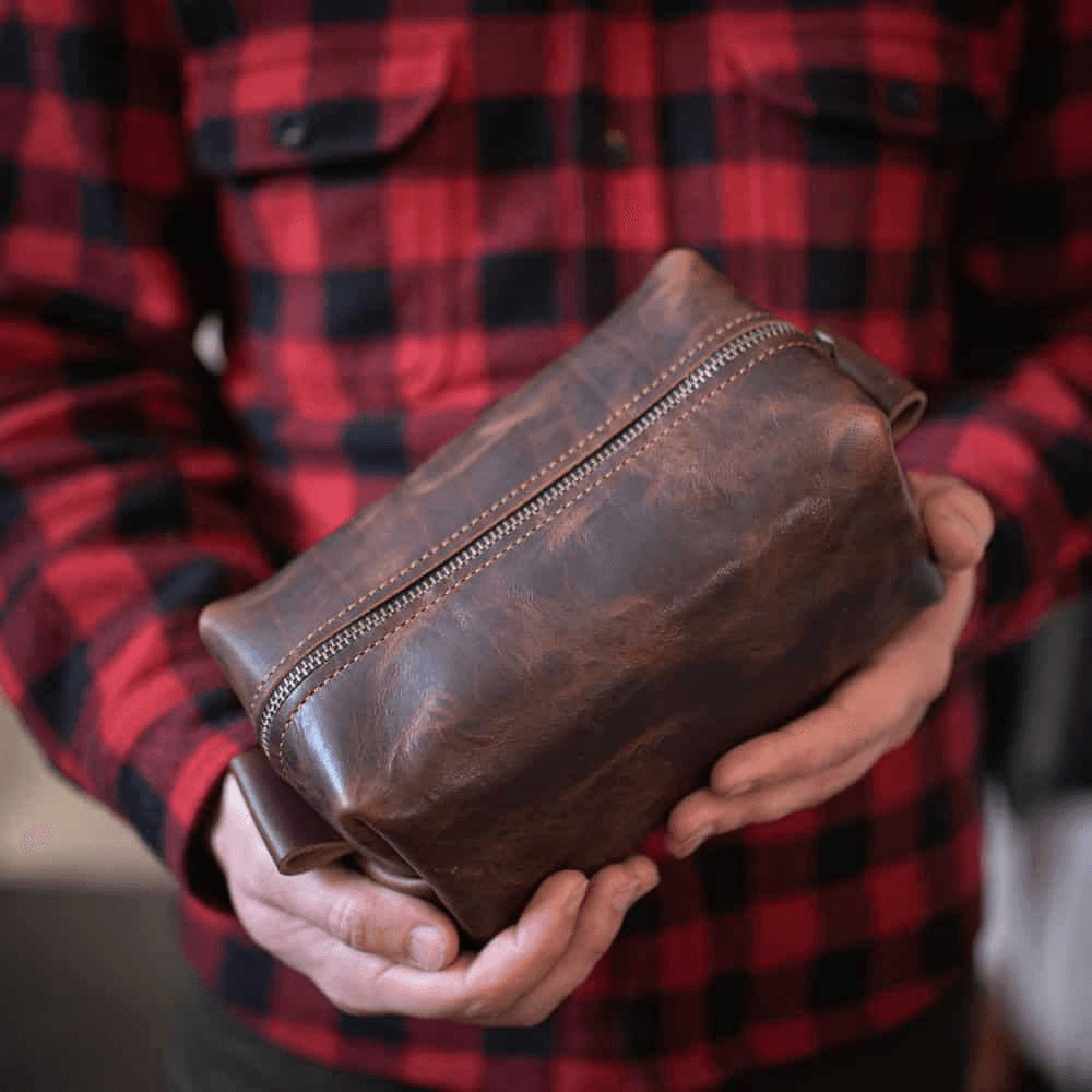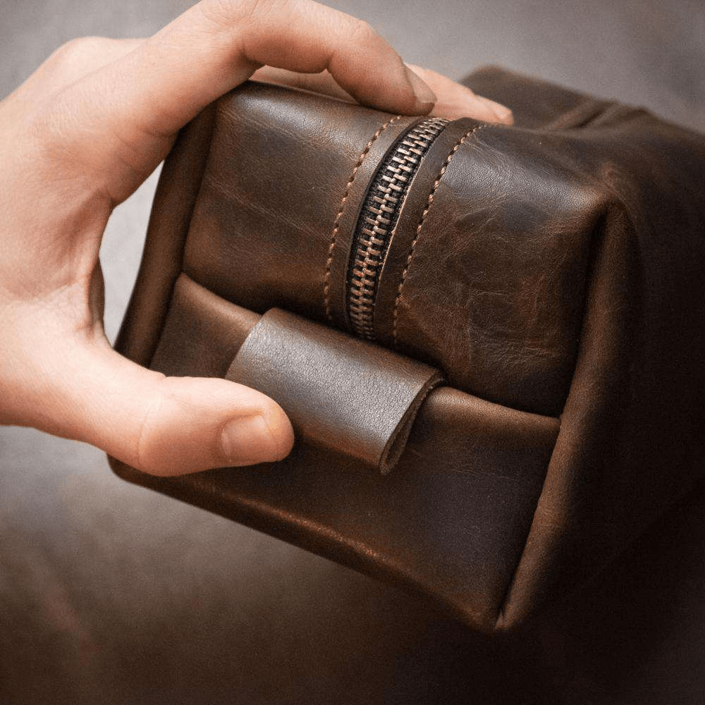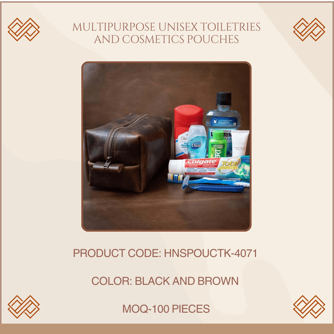 Premium Leather Craftsmanship: Our 100% leather toiletries pouch is expertly crafted from high-quality leather, ensuring both durability and a touch of elegance. Keep your shaving kit, electric shaver, perfumes, Cosmetics, Deo sprays, toiletries, etc. in one pouch while travelling. This is a very practical gift for self or anyone who travels for work or pleasure.